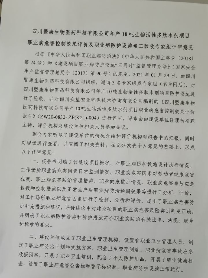 購買生產廠房、辦公用房及附屬配套設施,新建年10噸生物活性多肽生產線一條。