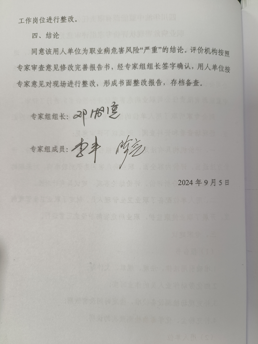 (2)建議用人單位應嚴格執行上崗前、在崗期間、離崗時的職業體檢制度,依據《職業健康監護技術規范》(GBZ188-2014)的相關要求組織體檢,體檢結果應書面告知員工,體檢結果有異常的,須及時進行復查,復查結果仍然有異常的須按規定進行診療,并做妥善安排。 (3)對準備脫離所從事的職業病危害作業或者崗位的勞動者,用人單位應當在勞動者離崗前30日內組織勞動者進行離崗時的職業健康檢查。勞動者離崗前90日內的在崗期間的職業健康檢查可以視為離崗時的職業健康檢查。對需要復查的勞動者,用人單位應當按照職業健康檢查機構要求的時間安排復查和醫學觀察;不得安排有職業禁忌的勞動者從事其所禁忌的作業,應當調離原工作崗位,并妥善安置。用人單位對未進行離崗時職業健康檢查的勞動者,不得解除或者終止與其訂立的勞動合同。 (4)建議用人單位根據《職業健康監護技術規范》(GBZ188-2014)要求,組織接觸職業病危害的作業人員到具有資質的醫療衛生機構參加體檢,體檢項目應按照崗位接觸的職業病危害因素進行。 (5)建議用人單位外委人員所在單位根據《中華人民共和國職業病防治法》與《職業健康監護技術規范》(GBZ188-2014)的要求,嚴格執行上崗前、在崗期間、離崗時的職業體檢制度。依據外委人員在用人單位從事的工種崗位,組織所有接觸職業病危害的外委人員到具有資質的醫療衛生機構參加體檢,體檢項目應按照崗位接觸的職業病危害因素進行。 4職業衛生管理 (1)依據《工作場所職業衛生管理規定》(中華人民共和國國家衛生健康委員會令[2020]第5號)第二十條規定:職業病危害嚴重的用人單位,應當委托具有相應資質的職業衛生技術服務機構,每年至少進行一次職業病危害因素檢測。每三年至少進行一次職業病危害現狀評價。檢測、評價結果應當存入本單位職業衛生檔案,并向衛生主管部門報告和勞動者公布。 (2)用人單位不得將產生職業危害的作業轉移給不具備職業病防護條件的單位和個人。不具備職業病防護條件的單位和個人不得接受產生職業病危害的作業。 (3)用人單位與勞動者訂立勞動合同(含聘用合同)時,應當將作業過程中可能產生的職業病危害及其后果、職業病防護措施和待遇如實告知勞動者,并在勞動合同中寫明,不得隱瞞或者欺騙。 勞動者在履行勞動合同期間因工作崗位或者工作內容變更,從事與所訂立的勞動合同中未告知的存在的職業病危害的作業時,用人單位應當依照前款規定,向勞動者履行如實告知義務,并協商變更勞動合同相關條款。 (4)本次職業病危害現狀評價,只針對此次調查及檢測過程中的生產狀況,公司今后的生產狀況如果發生改變,導致職業病危害因素變化或增加時,應及時進行職業病危害因素申報及評價。 |