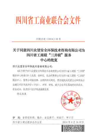 四川省工商聯批復:四川眾望安全環保技術咨詢有限公司為“四川省 三并聯 服務中心”,更好地促成企業建設項目快速評價(評估)、評審、審批!!!