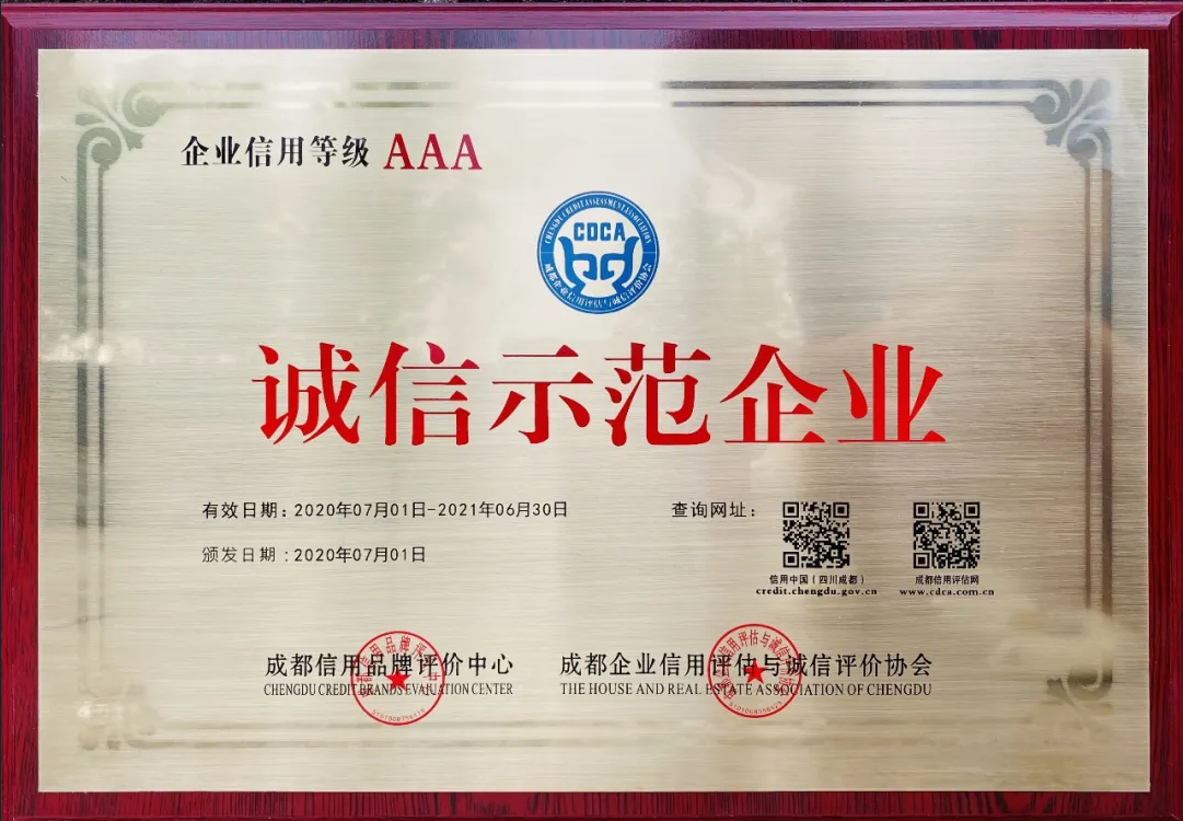 2020年7月,四川眾望安全環保技術咨詢有限公司榮獲AAA級企業信用等級證書【信用中國可查】,同時被授予“AAA級誠信示范企業”。獲得該類評級的企業具有優秀的信用紀錄,合同履約能力強,經營狀況佳,盈利能力強,發展前景廣闊。這標志著眾望公司在企業信用建設方面取得了實質性的成果,必將進一步增強企業的市場競爭力。